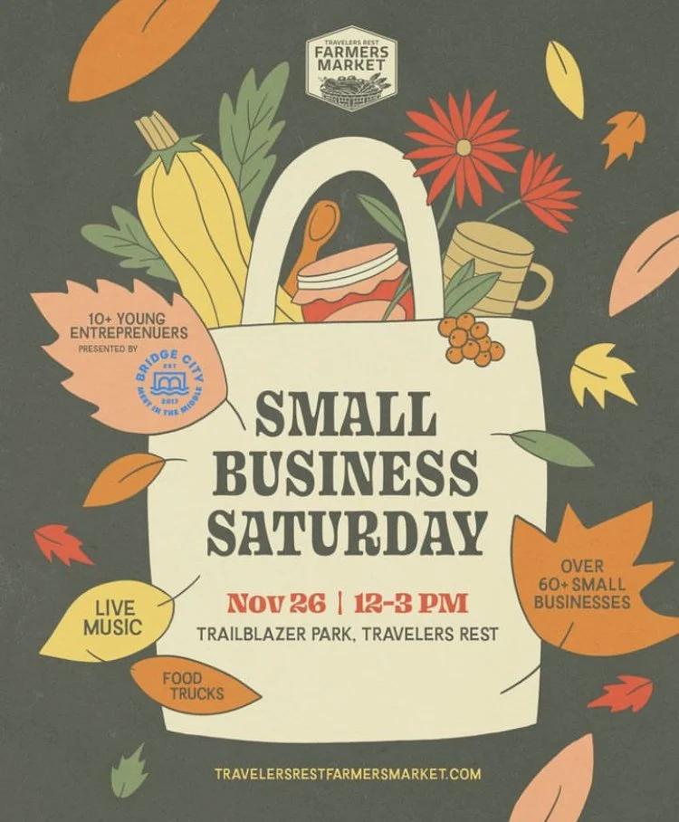The perfect kickoff to the holiday season - Small Business Saturday in Travelers Rest! Featuring over 60 small businesses, live music, and food trucks. Contact us if you’d like to reserve any items to pick up at this local market or come do your browsing the day of. We can’t wait to see you!