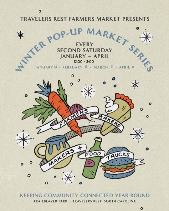 Our AppaRev family has come to love and adore the Travelers Rest Farmers Market! With an amazing family & community centered approach, this market has you feeling right at home. You can’t help but cherish the small town charm with the live music, local farmers, baked goods, food trucks and many local artisans. Join us at Trailblazer Park for TR’s Winter Pop Up Market Series. Every second Saturday, January through April, 12:00 - 3:00.